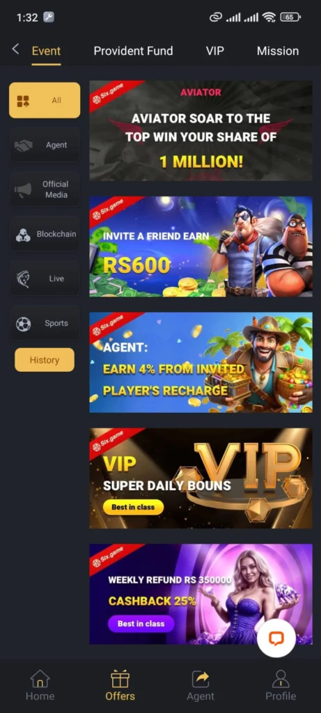 Six Game often gives bonuses and promotions — use them strategically to play more without risking your own money.
